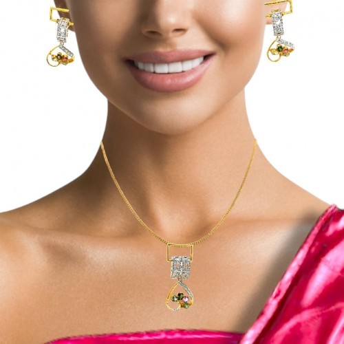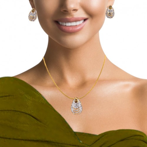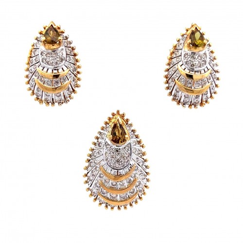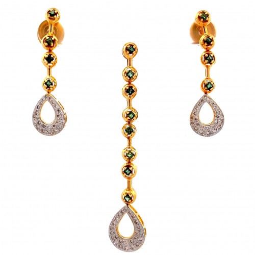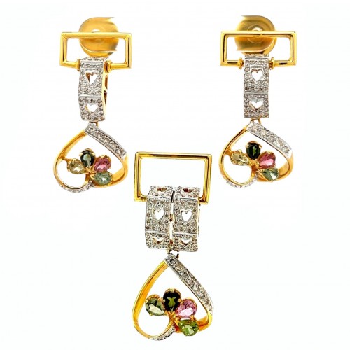 18K Two Tone Gold Pendant Earring Set with Natural Diamond & Tourmaline Gemstone Jewellery