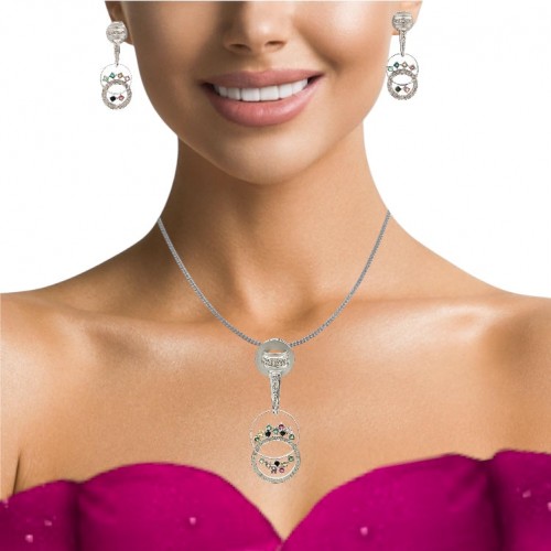 18K White Gold Pendant Earring Set with Natural Diamond & Multi Color Tourmaline Gemstone Jewellery
