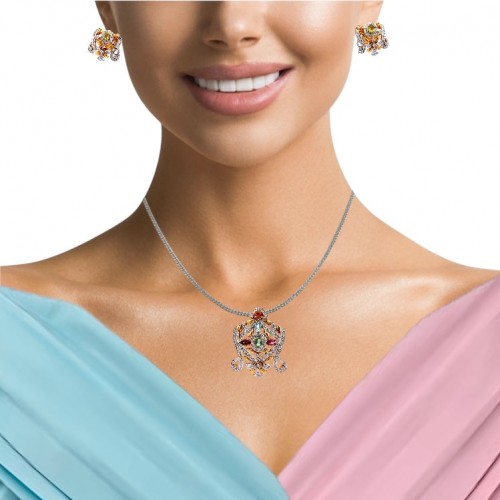 18K Yellow White Gold Pendant Earring Set with Natural Diamond & Multi Tourmaline Jewellery