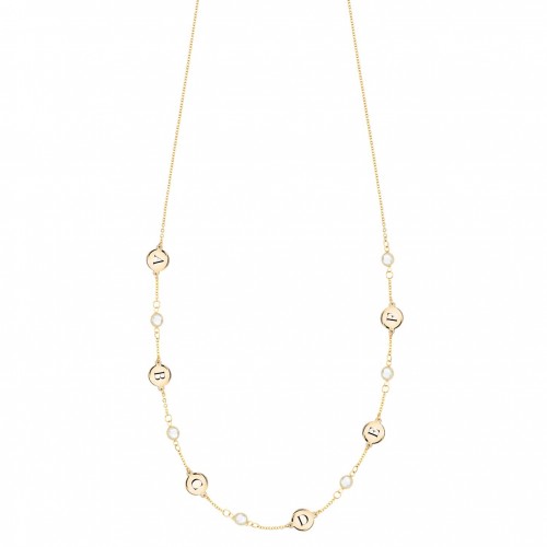 8 Letter & 8 Petite Birthstone Necklace in 14k Gold (Single Spacing)