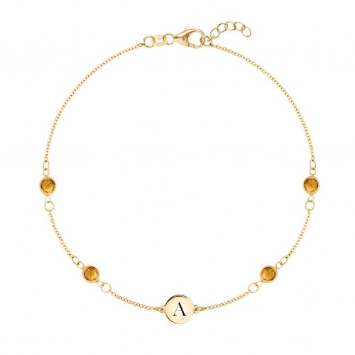 1 Letter & 1 Grand Citrine Adelaide Mini Bracelet in 14k Gold (November)