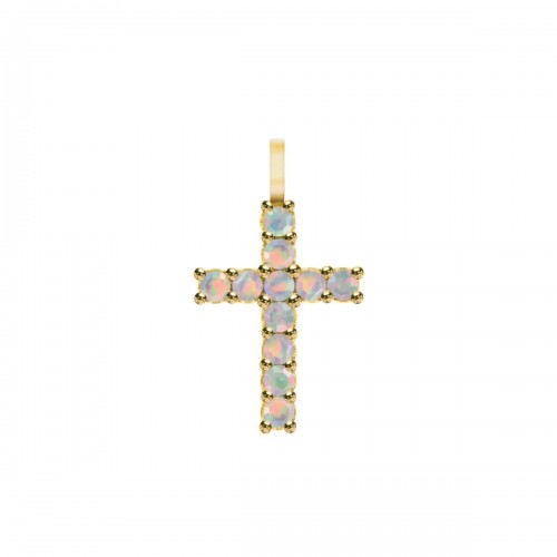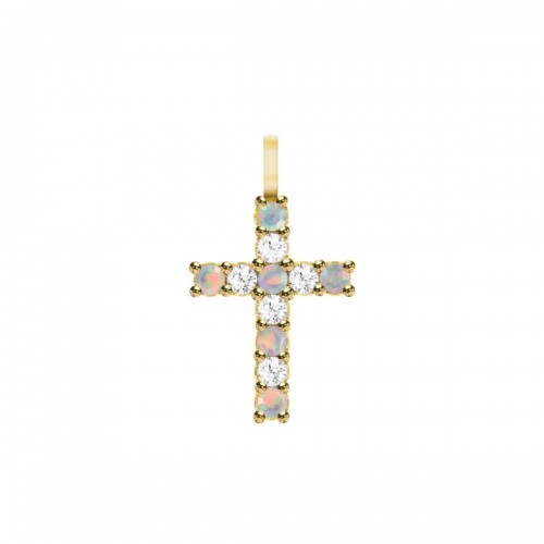 Rosecliff Cross Diamond & Opal Pendant in 14k Gold (October)