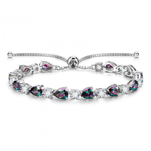 “Glamour Teardrop” October Birthstone Opal Sterling Silver Tennis Bracelet Classic Bolo Chain