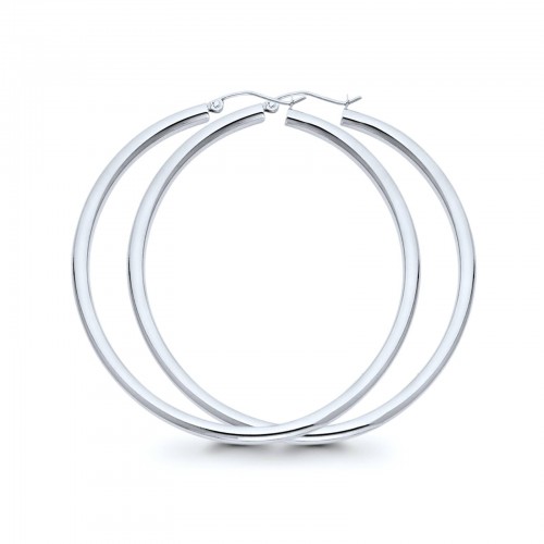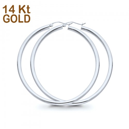 White Gold 14K 3mm Plain Snap Closure Hoop Earrings Wholesale