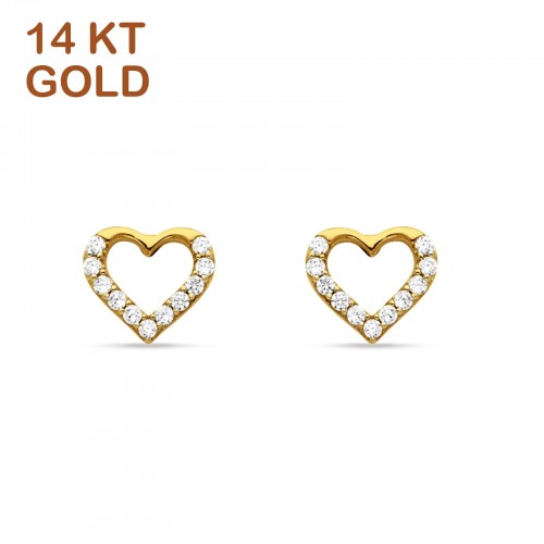 14K Yellow Gold 8mm Heart Shaped Cubic Zirconia Stud Earring Wholesale