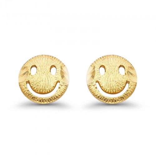 14K Yellow Gold 7mm Smiling Face Emoji Post Studs Earring Wholesale
