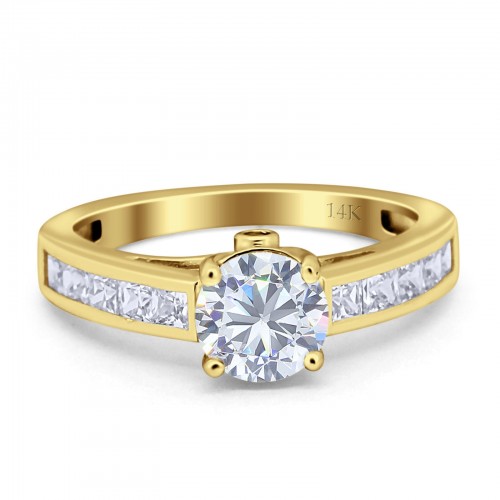 14K Yellow Gold Round Cubic Zirconia Princess Cut Ring Wholesale 14K Gold