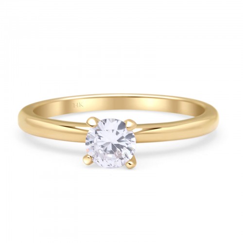 14K Yellow Gold Minimalist Round Cubic Zirconia Solitaire Ring Wholesale 14K Gold