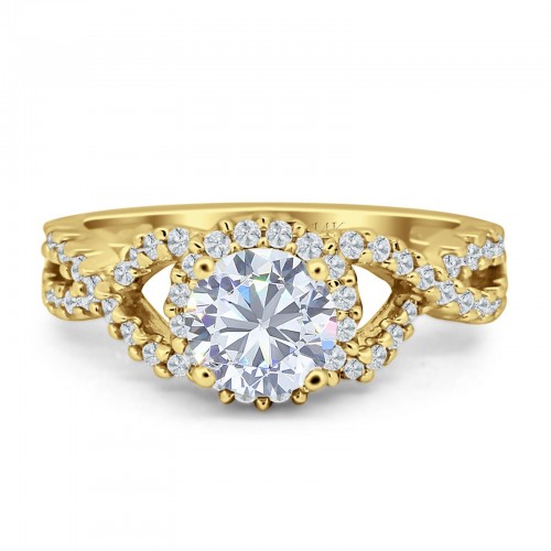 14K Yellow Gold Halo Split Shank Twisted Ring Round Cubic Zirconia Wholesale 14K Gold