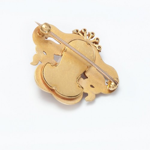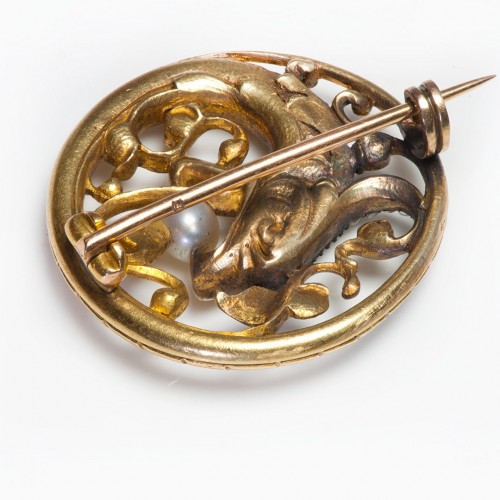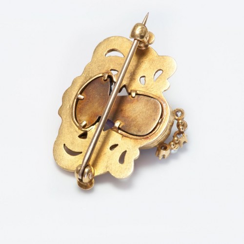 Antique Art Nouveau Gold Diamond Pearl Carved Amethyst Lady Brooch