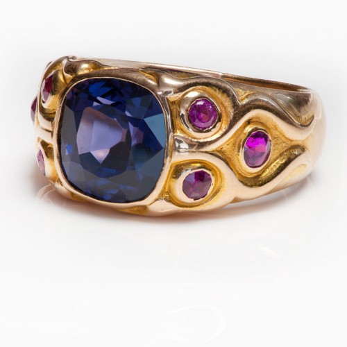 Antique Color-Change Spinel Red Spinel 18K Gold Gemstone Ring