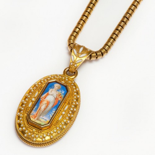 Antique Etruscan Revival Gold Enamel Locket Pendant Attrib. to Eugène Fontenay
