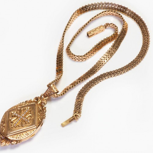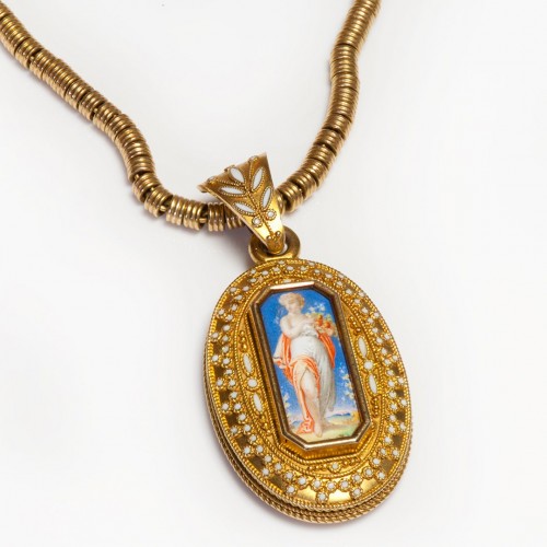 Antique Etruscan Revival Gold Enamel Locket Pendant Attrib. to Eugène Fontenay