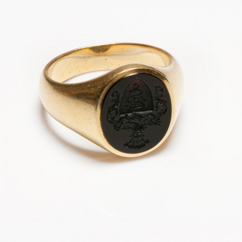 Antique French 18K Yellow Gold Men’s Ring with Heraldic Crest