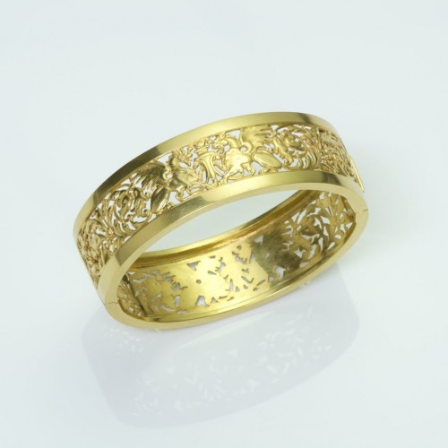 Antique French 18K Yellow Gold Art Nouveau Floral Bangle Bracelet