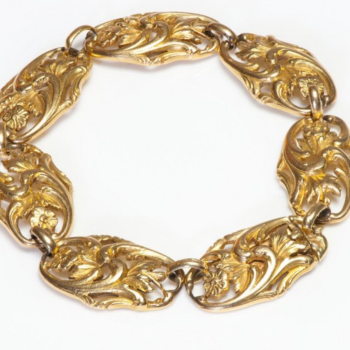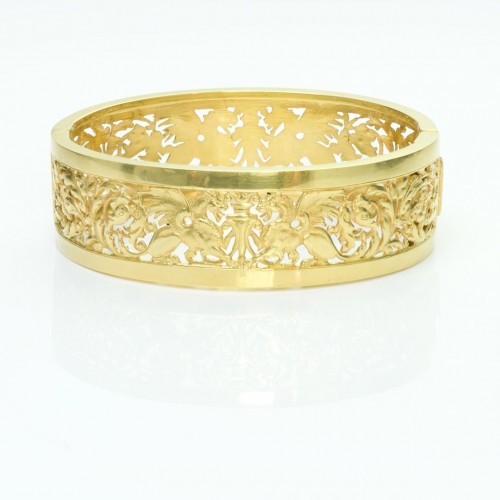 Antique French 18K Yellow Gold Art Nouveau Floral Bangle Bracelet