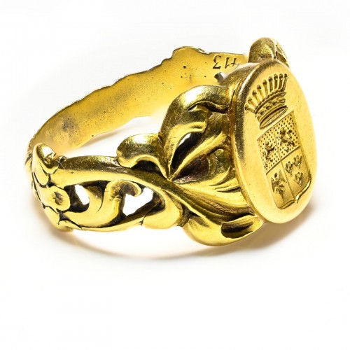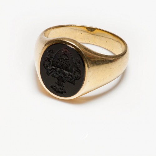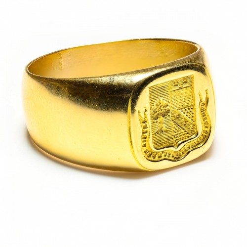 Antique French 18K Yellow Gold Men’s Ring with Heraldic Crest