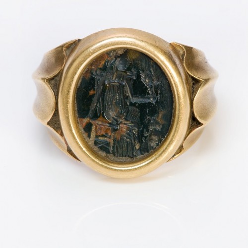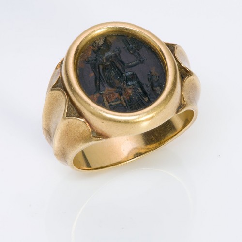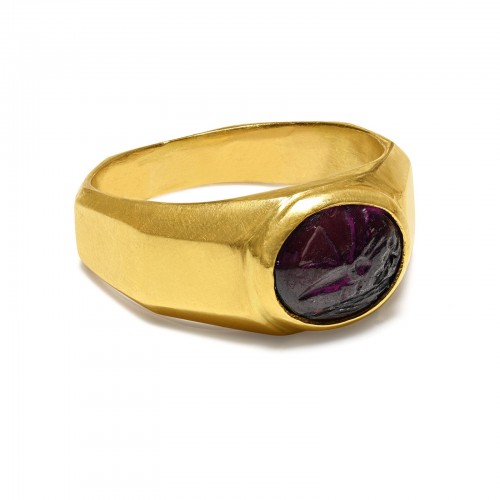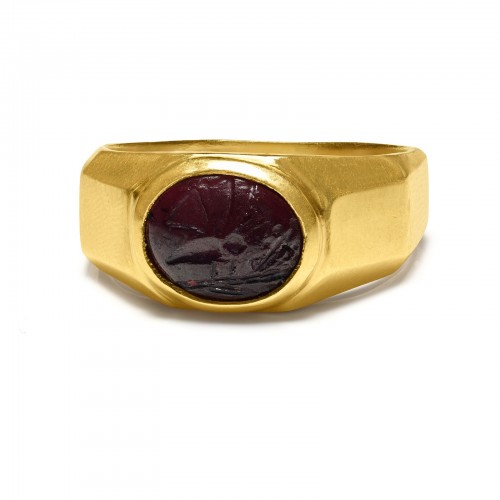 Ancient Garnet Intaglio in an Antique 18K Gold Mounted Men’s Ring