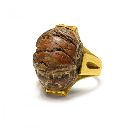 Ancient Human-Faced Scarab – Rare Archaeological Revival Gold Ring
