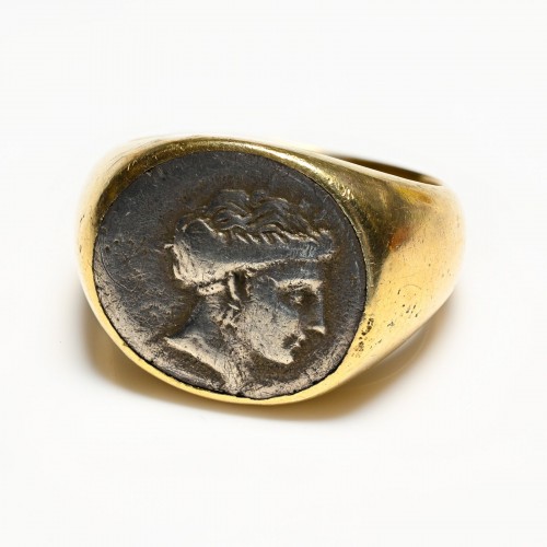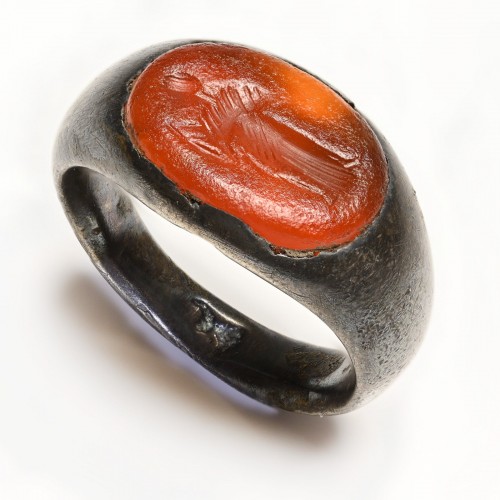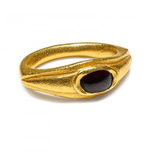 Ancient Roman Garnet Ring in High-Purity Gold, Circa 2nd–3rd Century CE