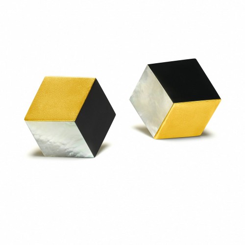 Angela Cummings Geometric Cube Earrings 18K Gold Onyx Mother-of-Pearl