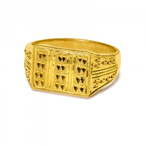 Ancient-Inspired Vintage 24K Gold Engraved Geometric Men’s Ring