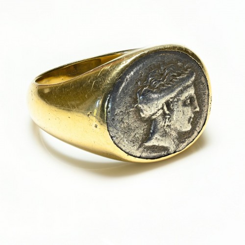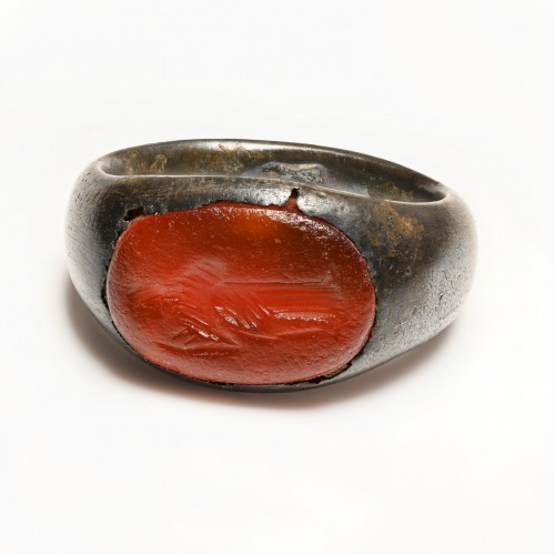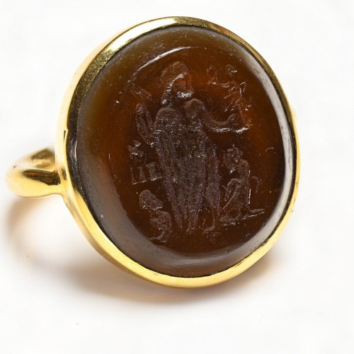 Ancient Roman Garnet Ring in High-Purity Gold, Circa 2nd–3rd Century CE
