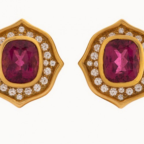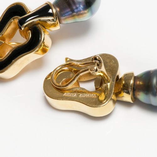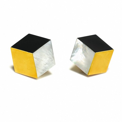 Angela Cummings Geometric Cube Earrings 18K Gold Onyx Mother-of-Pearl