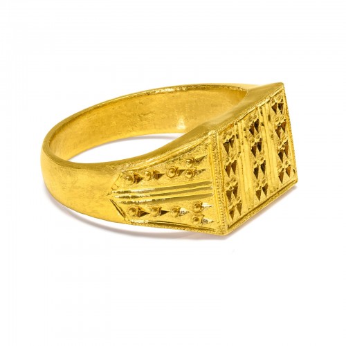 Ancient-Inspired Vintage 24K Gold Engraved Geometric Men’s Ring