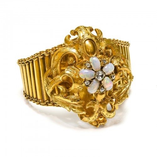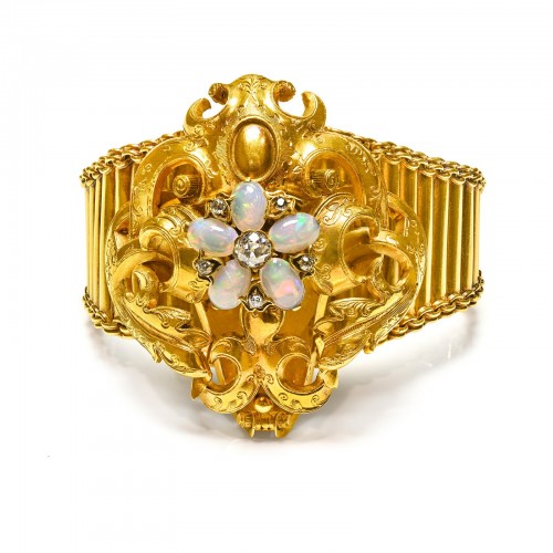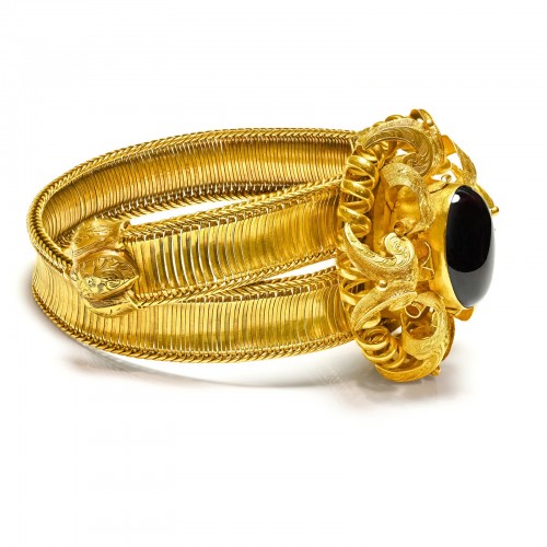 Antique Victorian Gold Bracelet with Cabochon Garnet Centerpiece
