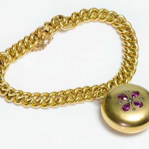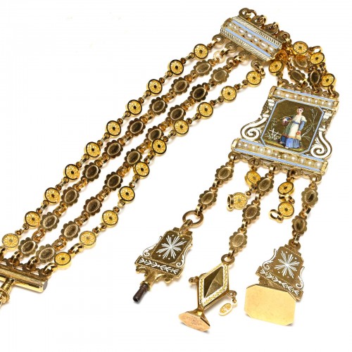 Antique 18K Gold Chatelaine with Enamel Painting, Napoleonic Era c.1810