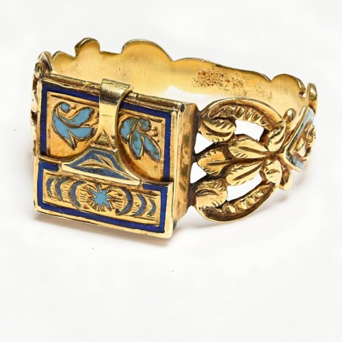 Earrings 18K Gold Blue Enamel and Turquoise Accents