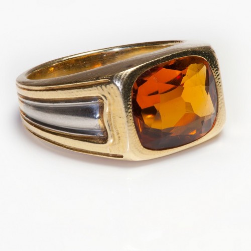 Antique 18K Gold Diamond Citrine Cameo Brooch by Gustav Manz