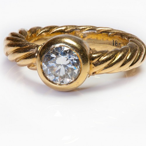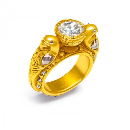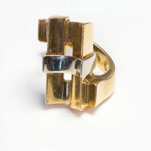 Two Tone 18K Yellow White Gold Architectural Modernistic Ring