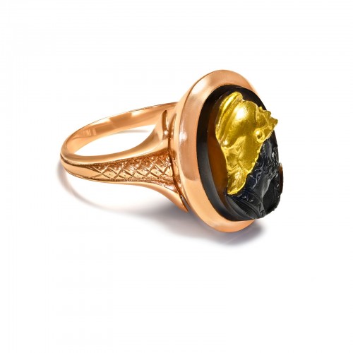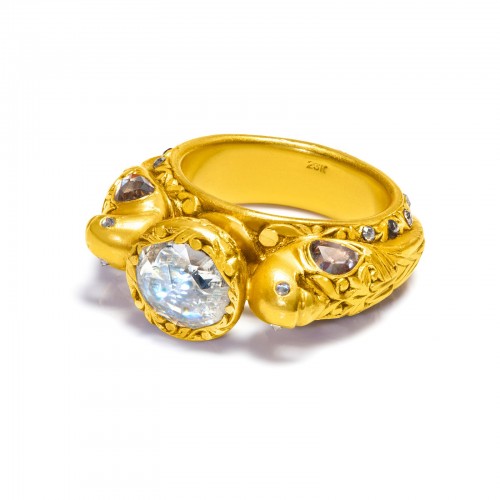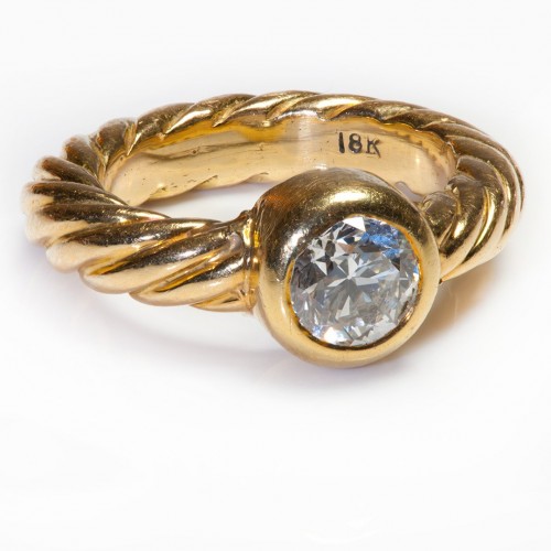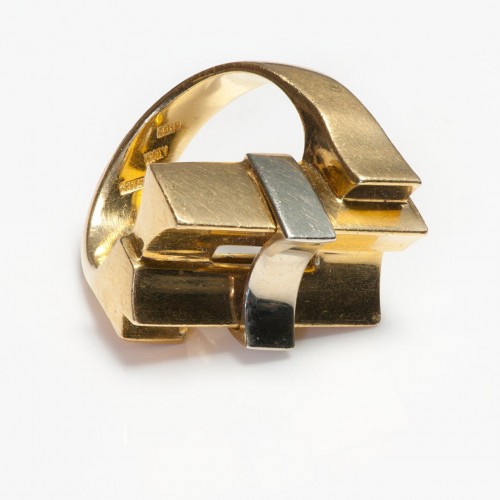 Two Tone 18K Yellow White Gold Architectural Modernistic Ring