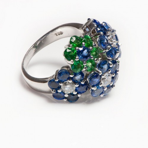 Trabert Hoeffer Mauboussin Ruby Emerald Sapphire Gold Christmas Tree Brooch