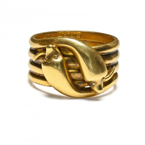 Victorian 18K Gold Snake Ring – London 1879, Eternal Embrace in Gold