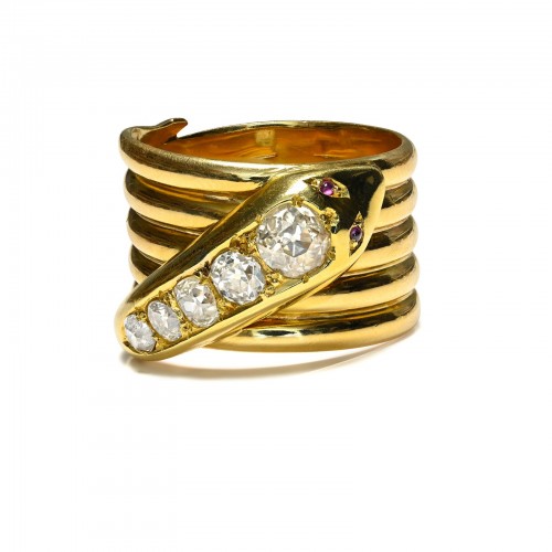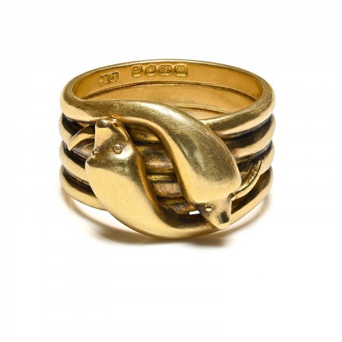 Victorian 18K Gold Snake Ring – London 1879, Eternal Embrace in Gold