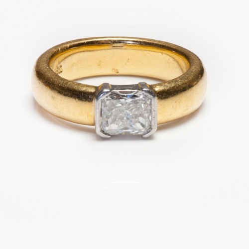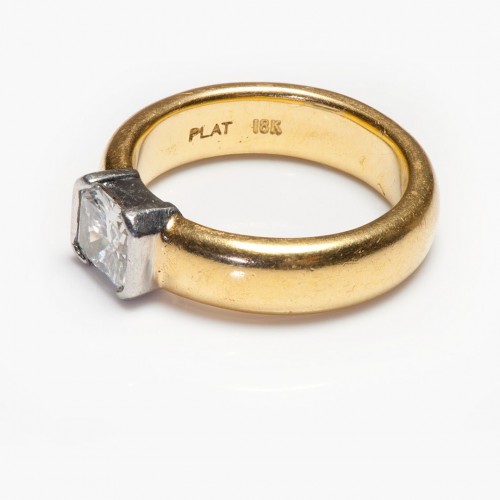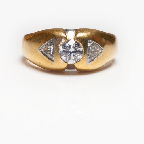 Vintage 18K Gold Platinum Triangular & Round Diamond Men’s Ring