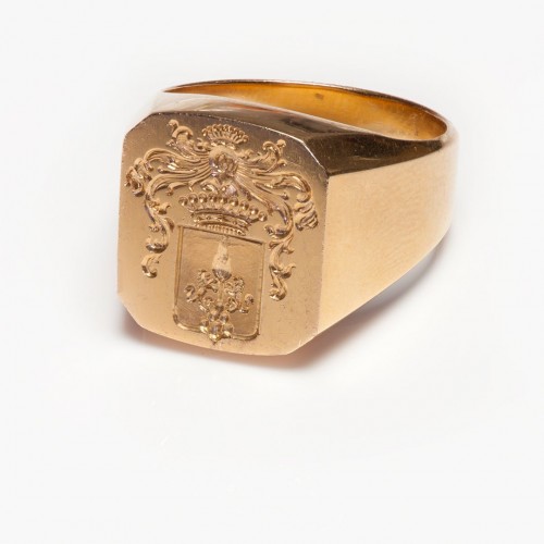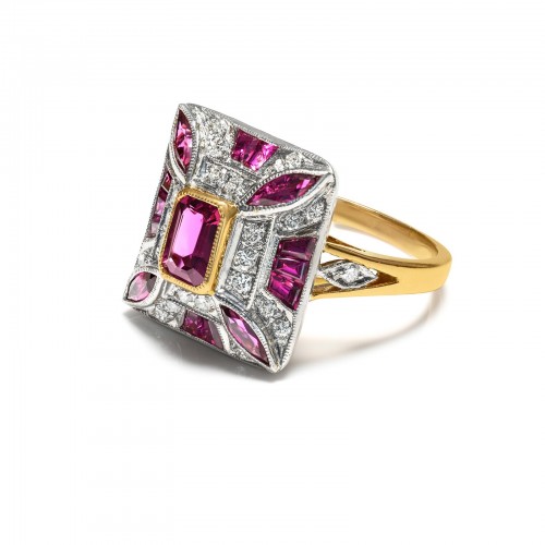 Vintage 18K Gold Square-Shaped Ring Round Brilliant-Cut Diamond