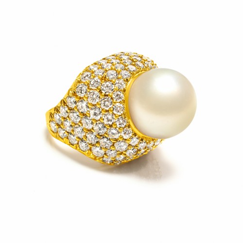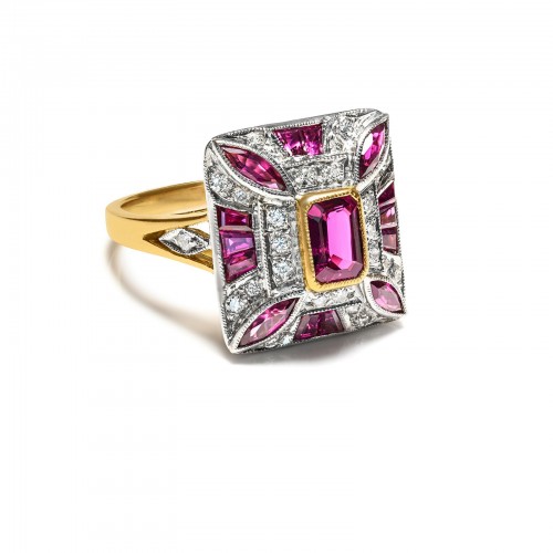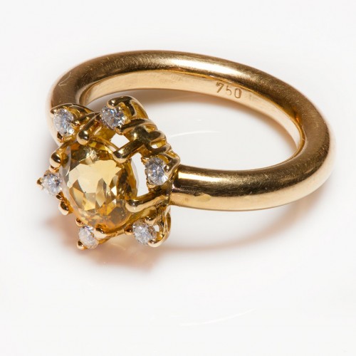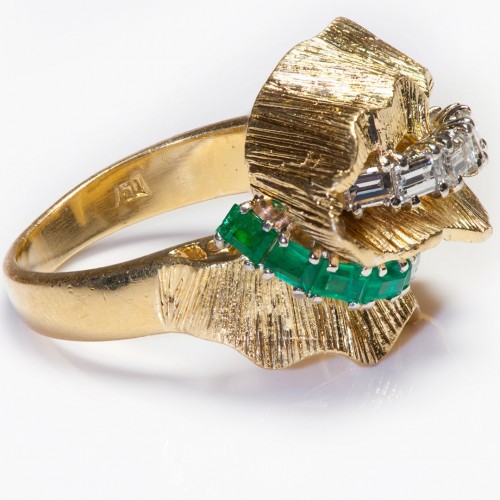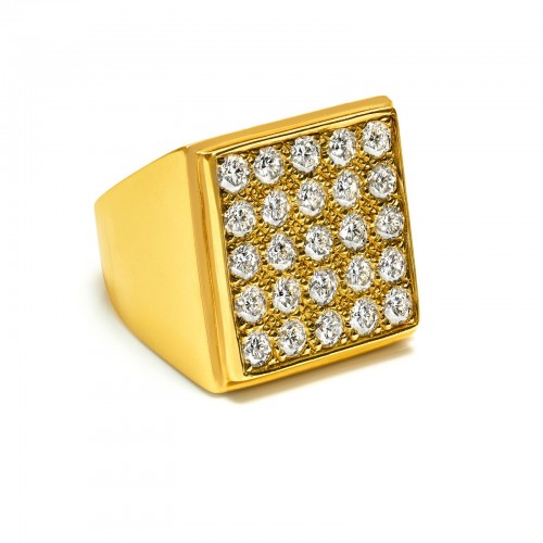 Vintage 18K Gold Square-Shaped Ring Round Brilliant-Cut Diamond