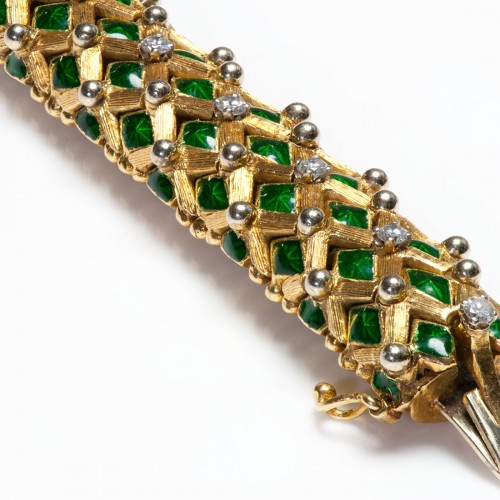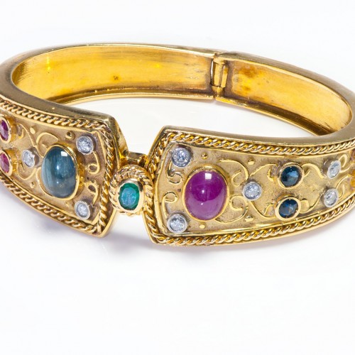 Vintage 18K Gold Ruby Sapphire Emerald Diamond Bangle Bracelet