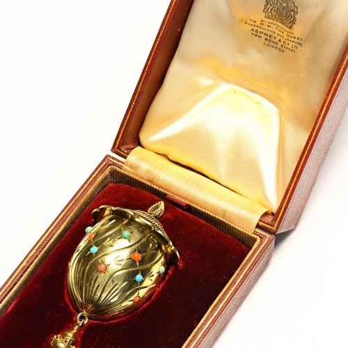Vintage Asprey 14K Gold Pomander with Tassel Turquoise and Coral