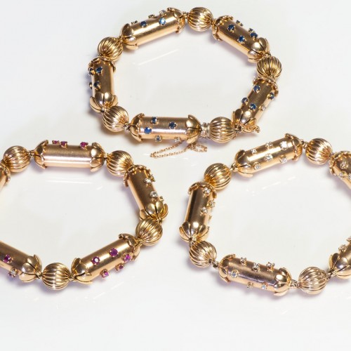Vintage Diamond, Ruby & Sapphire Gold Bracelets (Set of Three)