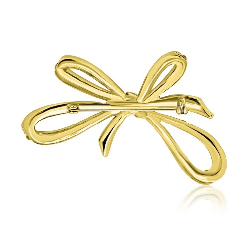 Winter Wedding Glittering Crystal Bridal Large Ribbon Bow Brooch Pin Gold Plated Gold Tone