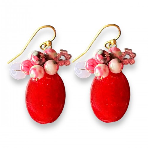 Handcrafted Red Oval Drop Earrings with Pink Bead Clusters Jewelry