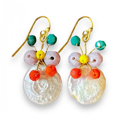 Colorful Beaded Cluster Earrings with Natural Pearl Lightweight Handcrafted Jewelry