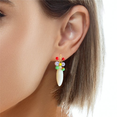Colorful Beaded Cluster Earrings with Natural Pearl Lightweight Handcrafted Jewelry