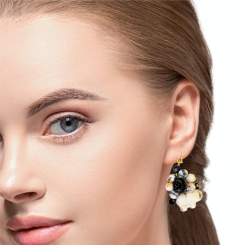 Handcrafted Elephant Dangle Earrings with Black Rose and Marble Beads Jewelry