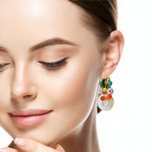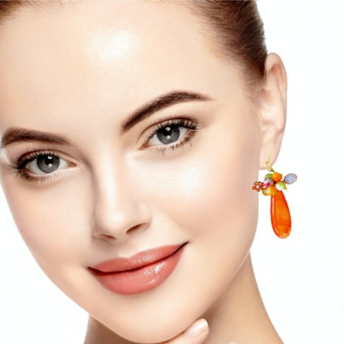 Artisan Orange Gemstone Teardrop Earrings Featuring Playful Multicolor Beads Jewelry